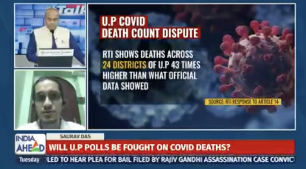 Activism/Press CoverageFound Discrepancy In Covid Death Numbers In UP: RTI ACTIVIST SAURAV DASJune 22, 2021